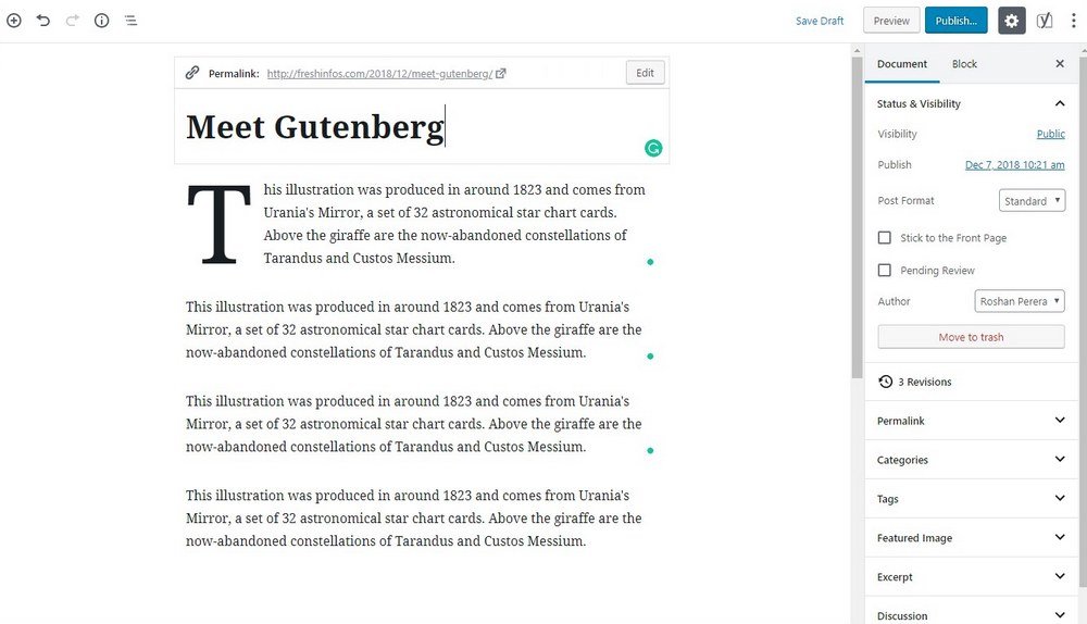 Gutenberg is a wordpress block editor and was introduced in december 2018. In 2018, when wordpress 5.0 was resealed it came with a brand new and enhanced version of a content editor called gutenberg wordpress editor. Thus, it has replaced the previously existing tinymce editor.